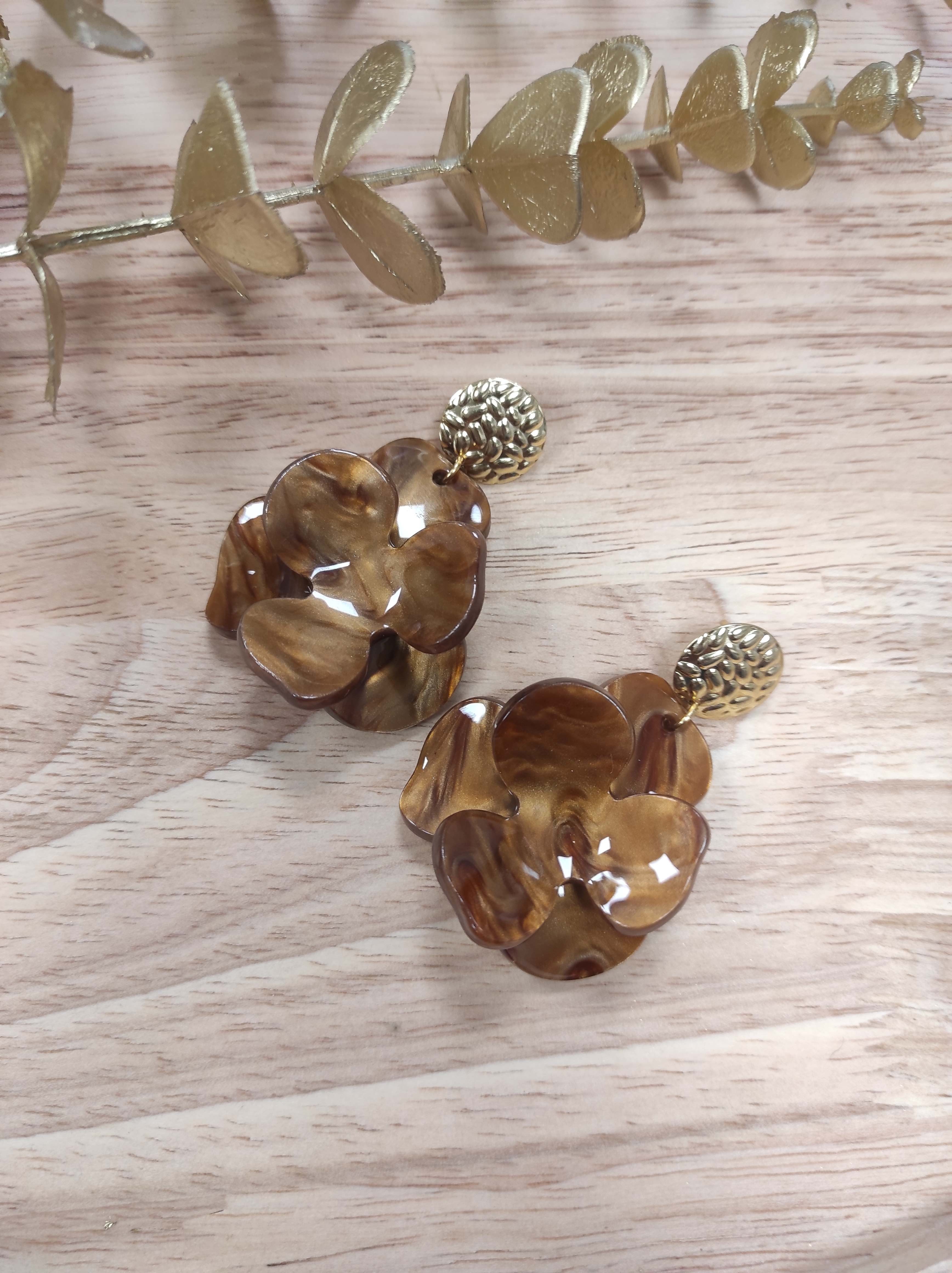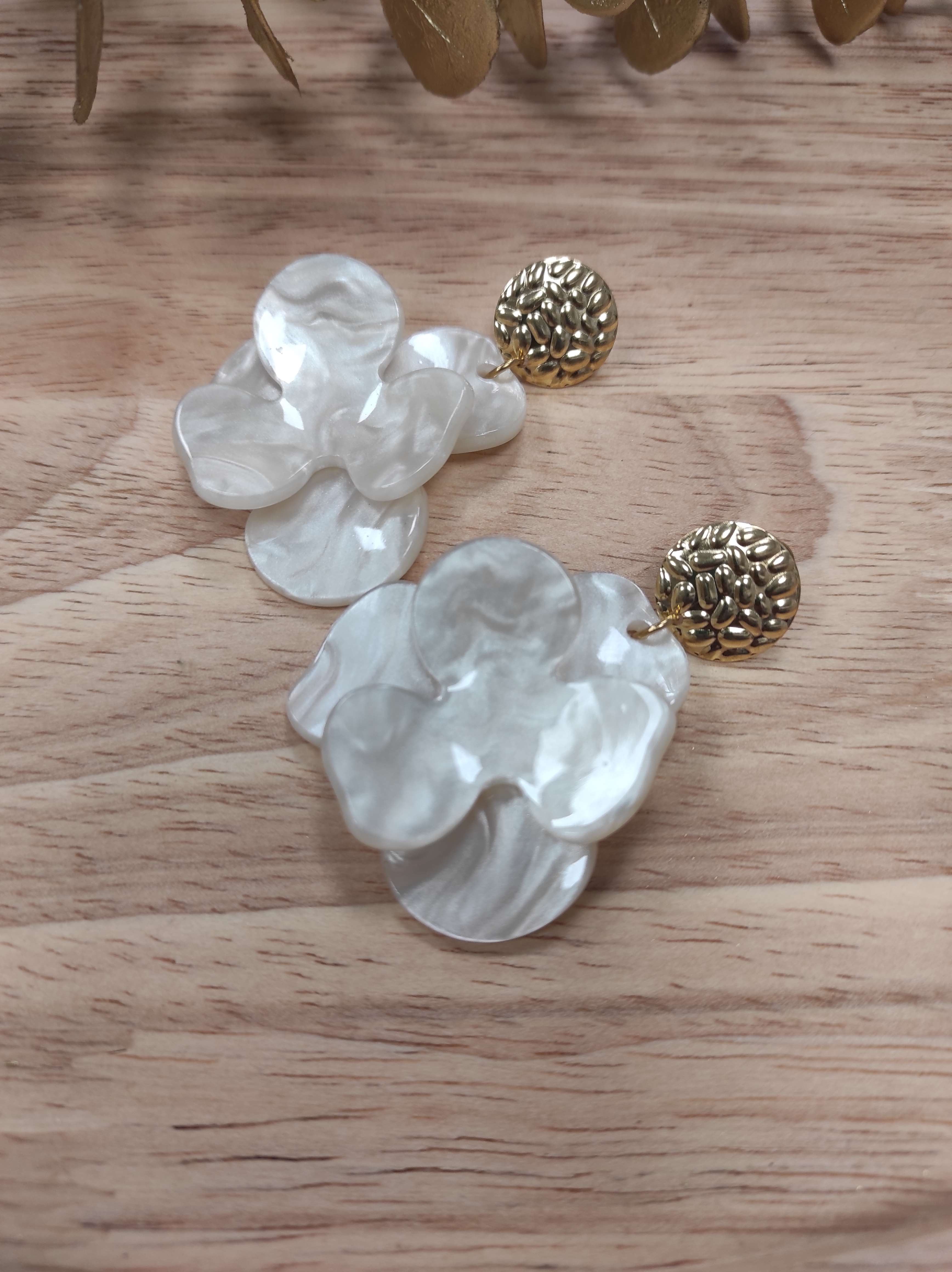 - avec les boucles Emeline avec un coeur doré au centre de la fleur.